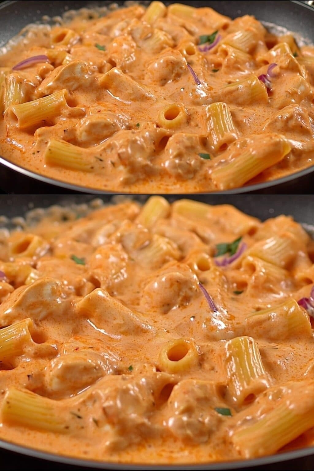 Diese cremige Pasta mit würziger Tomatensoße ist ein absoluter Genuss!