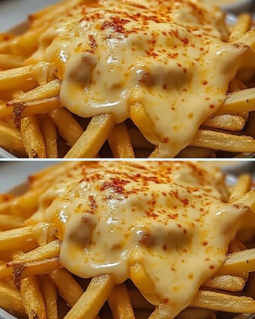 Wer sagt, dass Pommes immer langweilig sein müssen? Diese Variante hebt das beliebte Fast-Food auf ein ganz neues Level! Außen knusprig, innen weich – so müssen perfekte Pommes sein. Doch was sie wirklich unwiderstehlich macht, ist die großzügige Portion heißer, geschmolzener Cheddar-Käsesauce, die sich wie ein Schleier über die goldenen Kartoffelstäbchen legt. Ein Hauch Paprikapulver sorgt für das gewisse Extra – würzig, cremig, sättigend und einfach nur köstlich. Ob als Snack für zwischendurch, Party-Hit oder Filmabend-Leckerei: Diese Cheddar-Käse-Pommes werden garantiert nicht lange auf dem Teller bleiben.