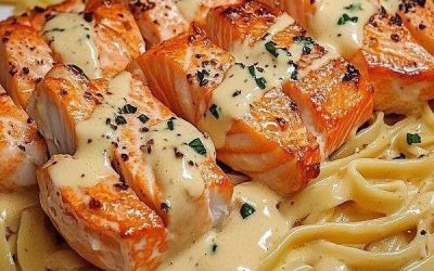 Zutaten: – 2 Lachsfilets, in Stücke geschnitten – 225 g Fettuccine-Nudeln – 30 ml Olivenöl – 30 g Butter –…