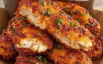 Knusprige Nacho-Hähnchenstreifen mit Paprika-Dip