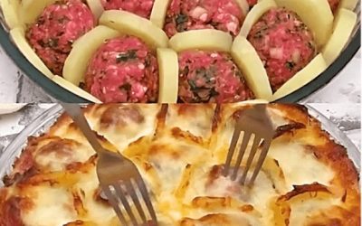 Hackbällchen mit Kartoffeln aus dem Ofen