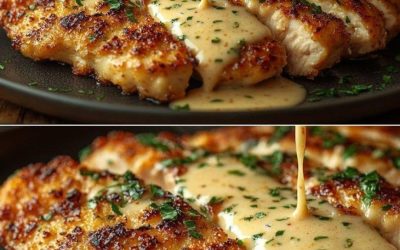 Knusprige Parmesan Hähnchenbrust mit cremiger Knoblauchsauce