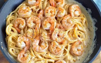 Zutaten: 400 g Spaghetti 300 g Garnelen (geschält, entdarmt) 200 g Frischkäse 150 ml Schlagsahne 2 Knoblauchzehen (fein gehackt) 1…
