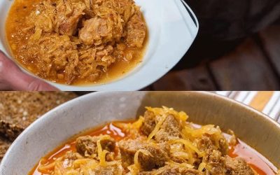 Zutaten: 250 g Zwiebeln 300 g Schweinefleisch 300 g Rindfleisch 100 g Speck, durchwachsener 500 g Sauerkraut 500 ml Fleischbrühe…