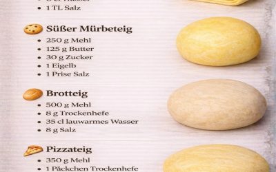 MÜRBETEIG (Herzhaft) Zutaten: 300 g Mehl 150 g kalte Butter 8 cl Wasser 1 TL Salz Zubereitung: Mehl und Salz…