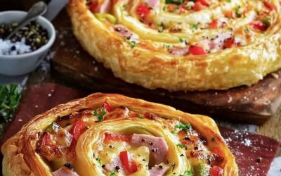 Zutaten: - 2 Packungen Blätterteig, ausgerollt - 1 Zwiebel - 1 Becher Schmand - 1 Paprika - 200 g geriebener…