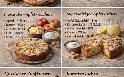 1. Rührkuchen nach Omas Art Zutaten: Butter (weich) – 250 g Zucker – 200 g Vanillezucker – 1 Packung Eier…