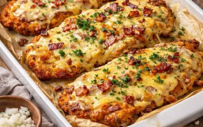 Zutaten (für 4 Schnitzel) 4 Schweineschnitzel Salz, Pfeffer, Paprika 1 Zwiebel, gehackt 2 Knoblauchzehen, gehackt 200 g geriebener Käse (Gouda,…