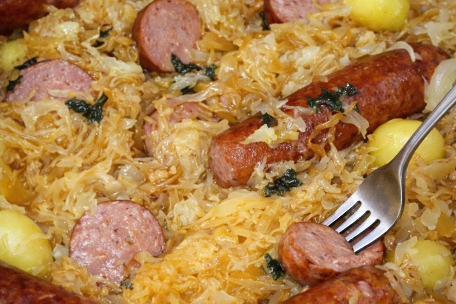 Die Kombination aus würzigem Sauerkraut, saftiger Wurst und zarten Kartoffeln macht dieses Gericht einfach unwiderstehlich. Schnell gemacht, einfach und voller Geschmack – ein Rezept, das jeder lieben wird!