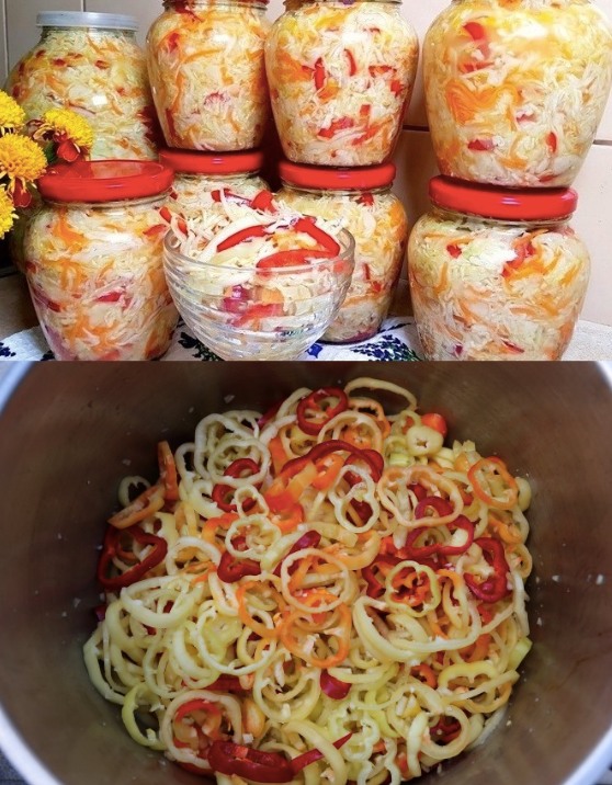 2 1/2 kg Gemüse (Kraut gehobelt, 3 Paprikaschoten, 1/2 Gurke, 3 Zwiebeln)